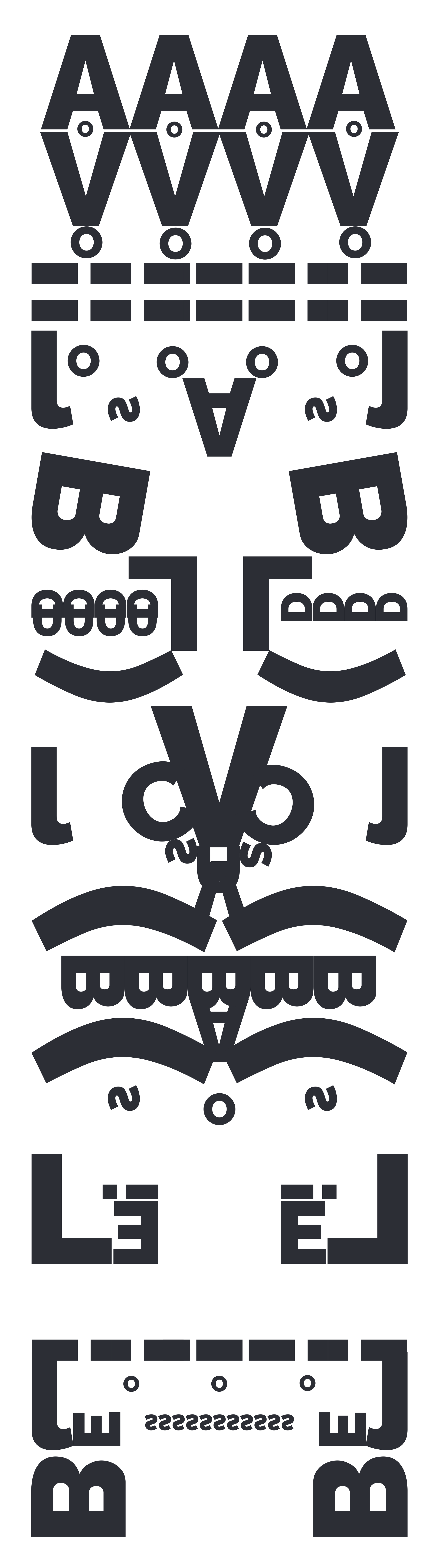 Ein prägendes Beispiel war eine frühe Übung im ersten Semester: Aus einer simplen Schriftart – Arial Black – entwickelte ich ein Tiki-Monster. Ohne zusätzliche Illustrationen oder Effekte, nur durch das gezielte Anordnen, Verformen und Kombinieren einzelner Buchstaben, entstand eine figurative Komposition mit Charakter und Humor.